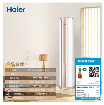 • 商品名称:Haier/海尔 KFR-50LW/09VTM21AU1 2匹一级能效立式家用空调